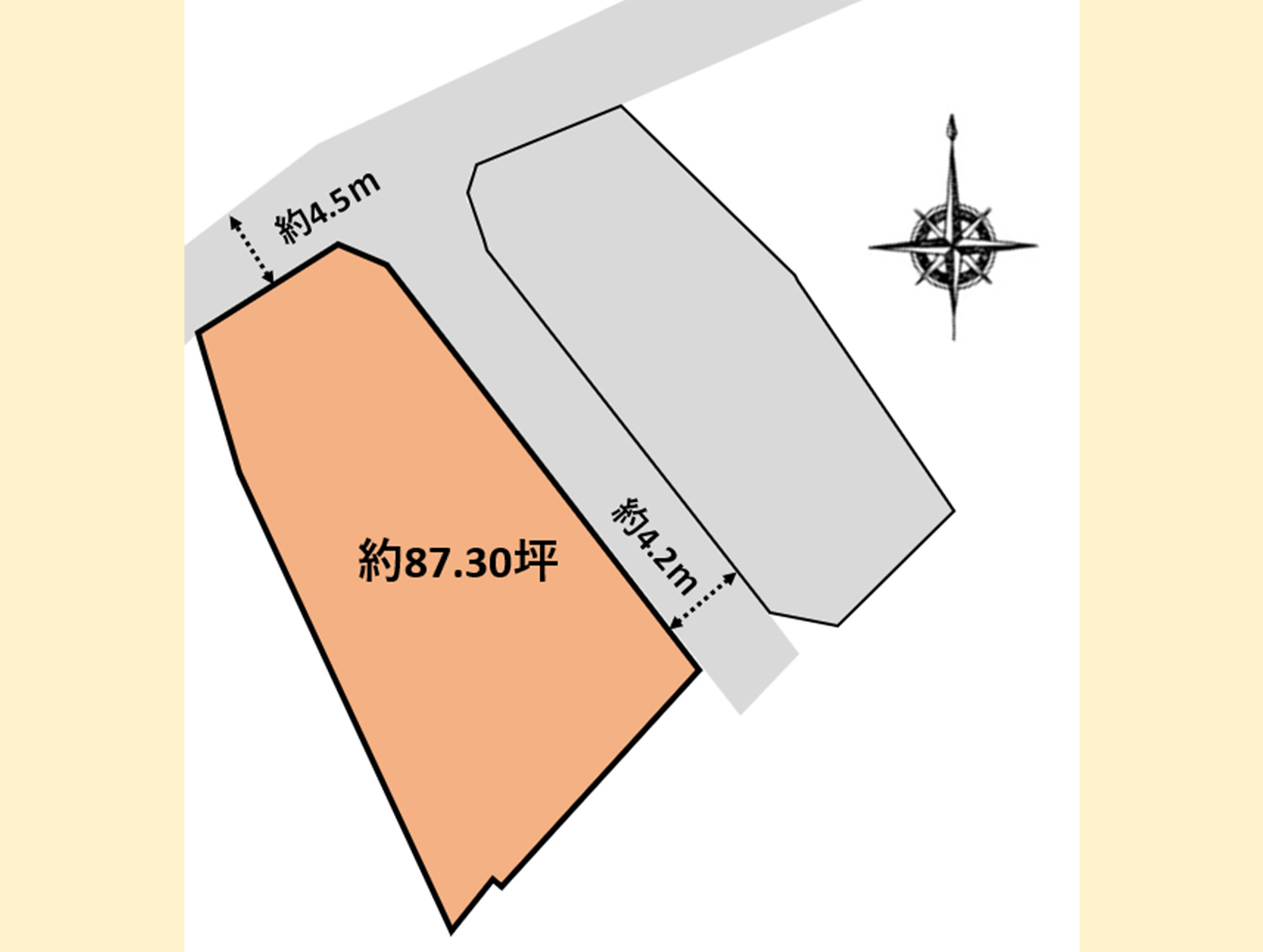 北東 幅員4.2m私道 北西 幅員4.5m公道 |
