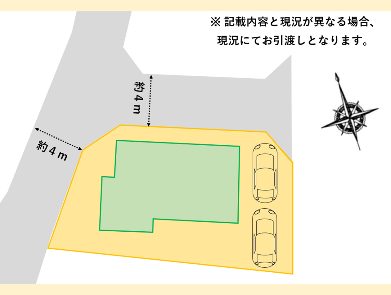 北西側 幅員4m公道 北東側 幅員4m私道(共有持分3分の1) |