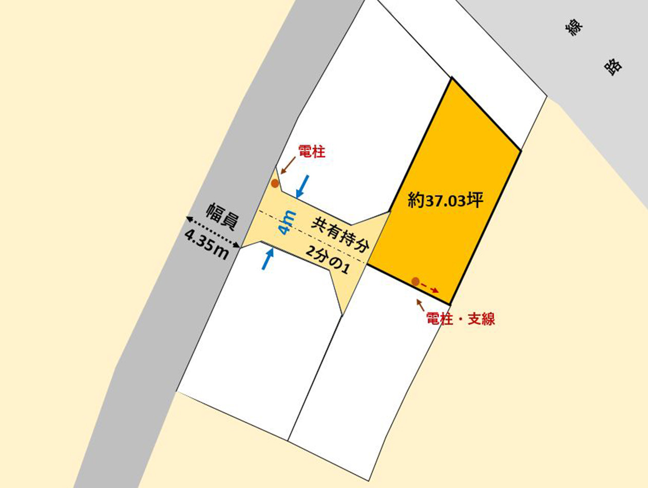 西側の道路(幅員4.35m)に敷地延長部分にて2m接道 |